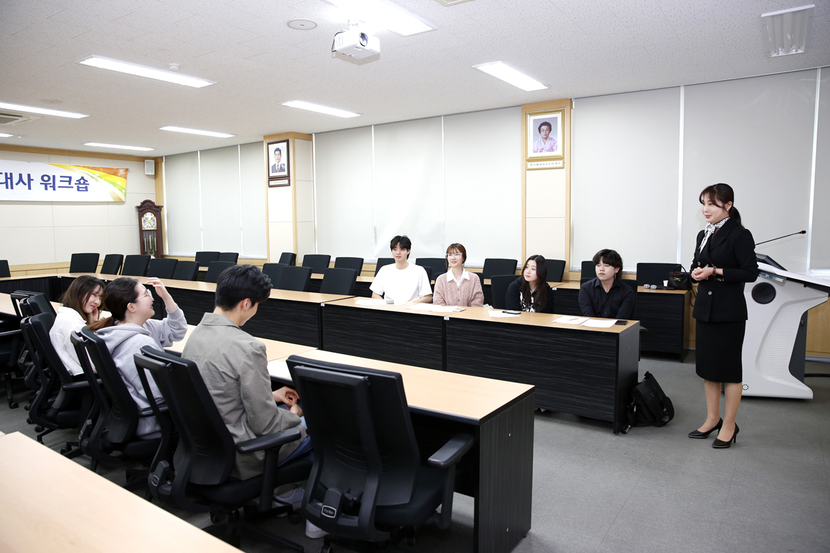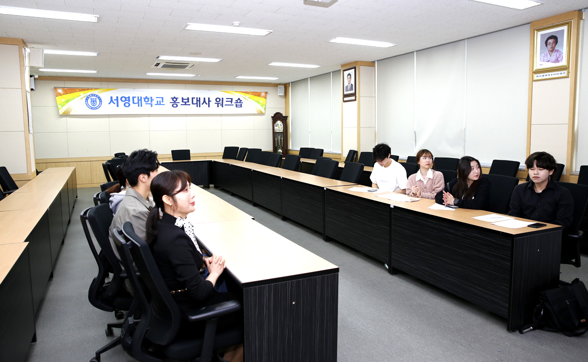 ○. 우리대학(총장 김정수)은 4월24일(수) 파주캠퍼스 홍보대사 워크숍을 개최하였다. 서영대학교 회의실에서 진행된 홍보대사 워크숍은 입학홍보처장 외 관련교직원 4명과 11기, 12기 홍보대사 8명 총 12명이 참석하였다. 홍보대사 워크숍은 이미지메이킹 특강을 시작으로 우리대학의 발전과 긍정적 이미지 제고를 위한 홍보방향에 관한 논의 순으로 진행되었다.