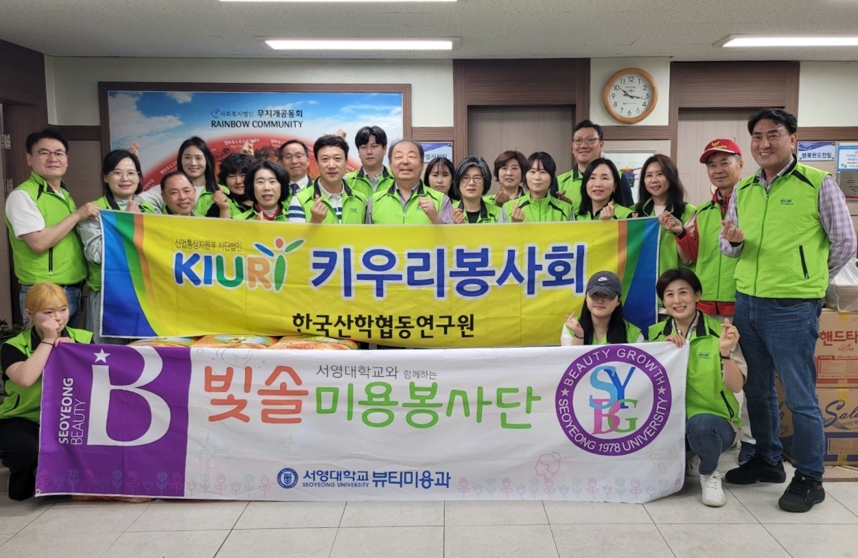 ○ 서영대학교 뷰티미용과는 최근 가정의 달을 기념해 엠마우스 복지관에서 한국산학협동연구원 키우리봉사회와 콜라보 봉사활동을 펼쳤다고 9일 밝혔다.
