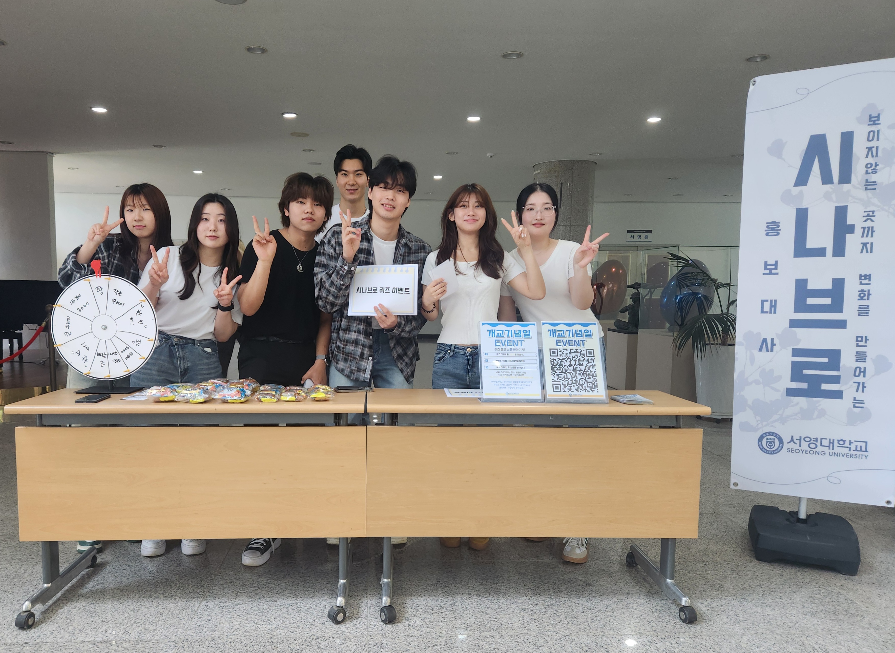 ○. 우리대학(총장 김정수)의 홍보대사(시나브로)는 개교 48주년을 맞이하여 5월 21일(화)에 개교기념일 축하 이벤트를 성황리에 진행하였다.○. 11기, 12기 홍보대사들은 개교기념일을 축하하는 의미에서 본교 전체 재학생을 대상으로 퀴즈 이벤트를 진행하고 다과를 전달하였다. 또한 시나브로 인스타그램 태그 이벤트를 통해 학교와 홍보대사를 널리 알리고 소정의 상품을 증정하였다.