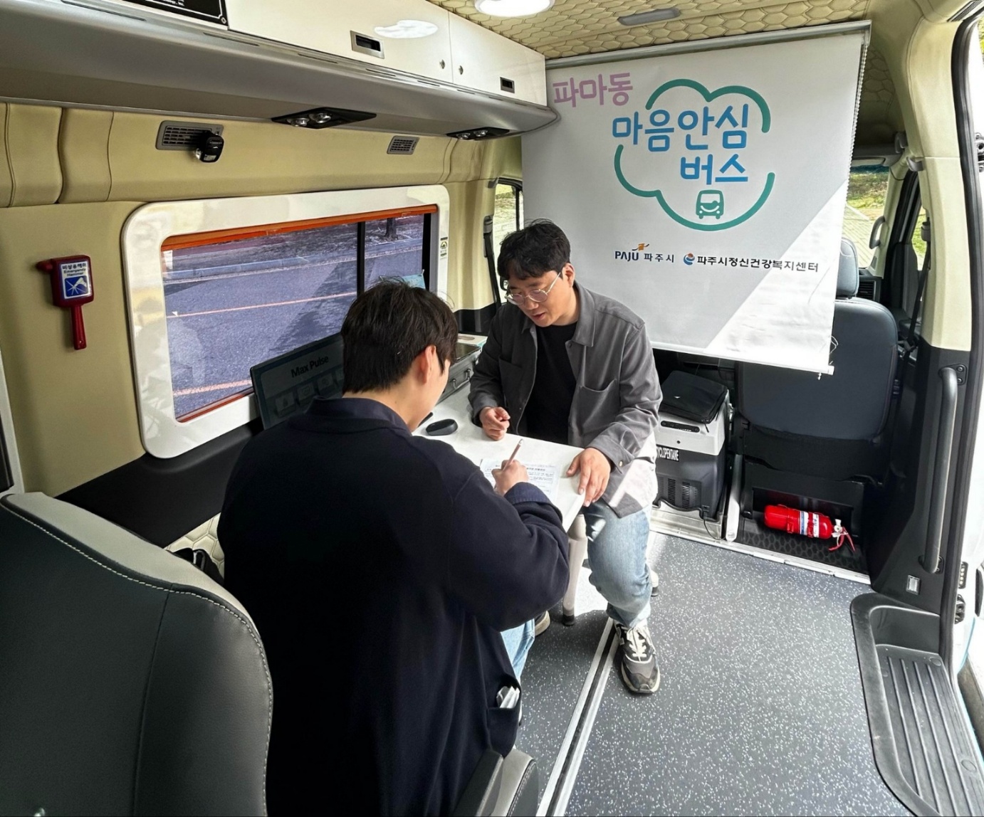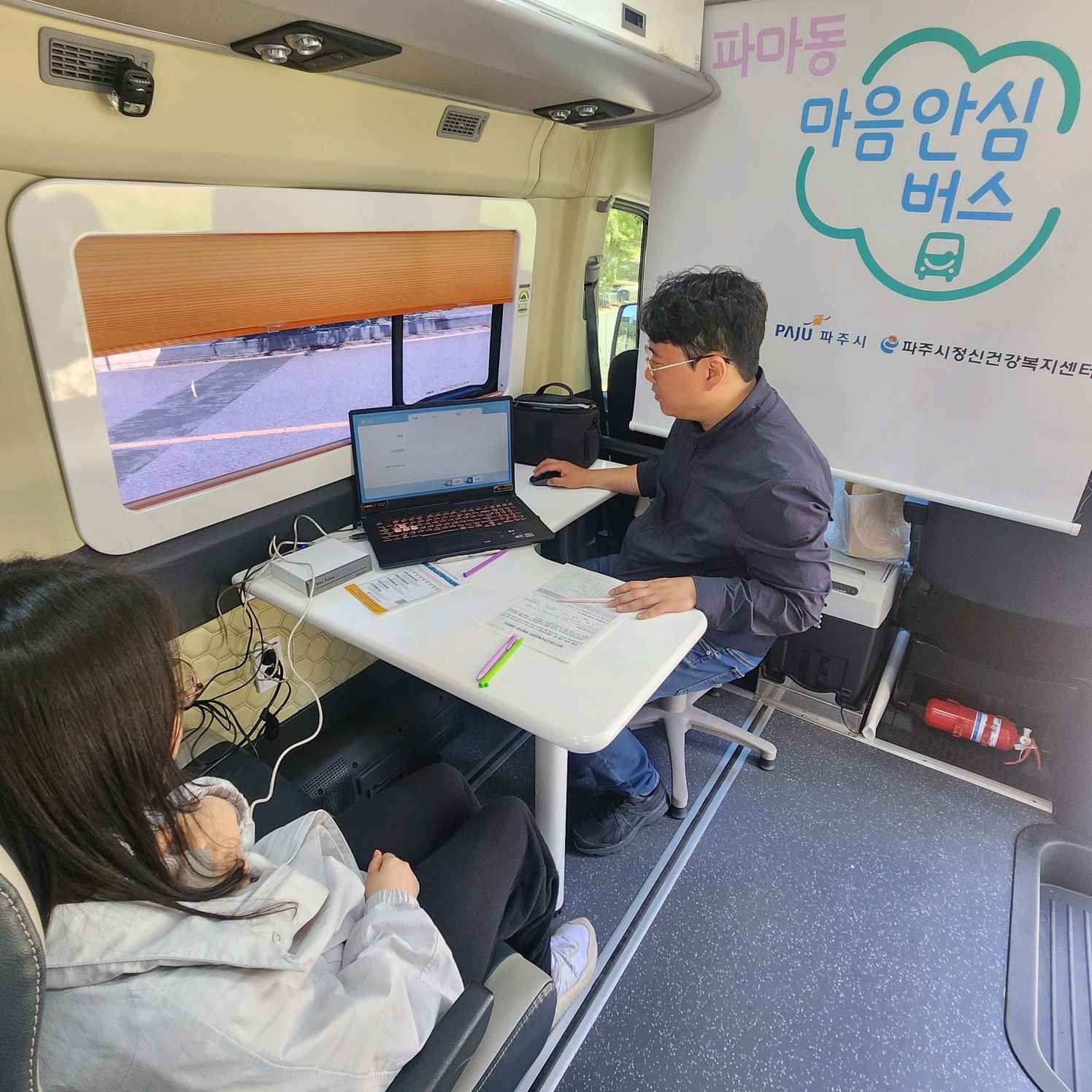 O. 2030 파주마음동행 마음안심버스는 정신건강 서비스가 필요한 청년을 대상으로 기동력 있는 버스를 활용해 직접 찾아가는 심리지원 서비스로, 청년들이 쉽게 정신건강 서비스를 받을 수 있고, 고위험군의 조기발굴을 통해 정신질환 만성화를 예방할 수 있도록 정신건강 서비스 연계를 지원하는 사업이다. 제공되는 서비스로는 ▲스트레스 측정, ▲우울, 불안 등 정신건강 자가검진, ▲정신건강 전문가 상담, ▲정신건강 정보제공 등이 있으며, 검사 결과 발굴된 고위험군은 센터로 연계해 정신건강의학과 전문의 ‘마음건강 주치의’ 상담, 치료비 지원 및 개별 사례관리 등 지속적으로 정신건강 서비스를 받을 수 있다.