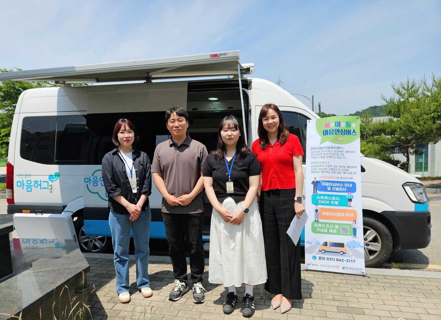 O. 우리대학(총장 김정수) 인권상담센터(부센터장 오민정)은 파주시정신건강복지센터와 업무협의를 통해 청년 정신건강증진을 위한 2030 파주마음동행 마음안심버스 사업을 진행하였다. 6월 5일 진행된 2030 파주마음동행 마음안심버스 사업은 오민정 인권상담센터 부센터장, 최희수 사회복지사, 박슬기 사회복지사, 김서윤 사회복지사가 함께 진행하였다.