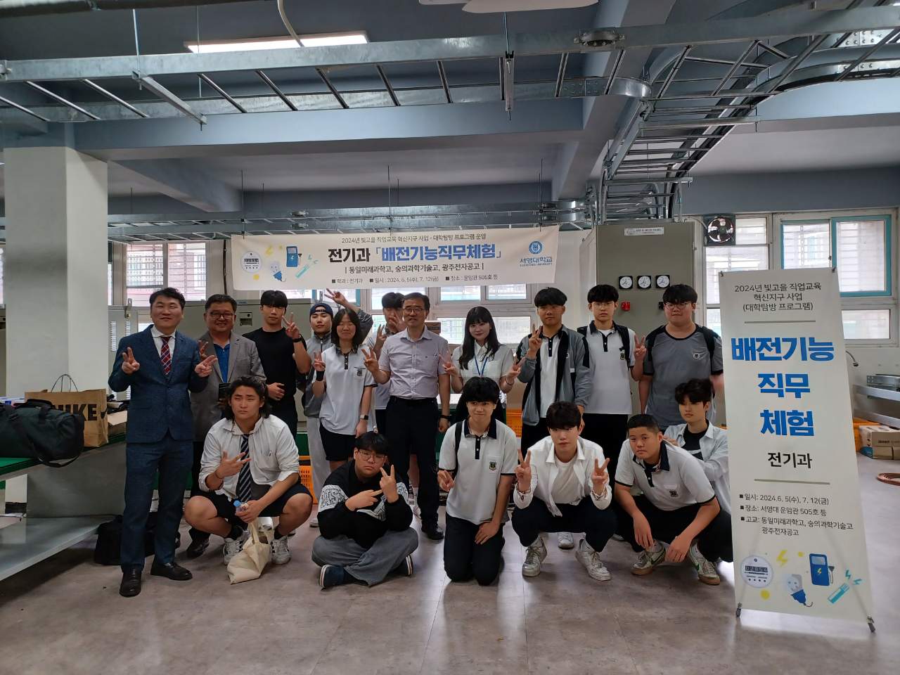 ○ 서영대학교는 최근 '2024년 빛고을 직업교육 혁신지구 사업'의 일환으로 동일미래과학고등학교에 재학 중인 취업동아리 학생 13명과 배전기능 직무체험교육을 실시했다고 9일 밝혔다.
