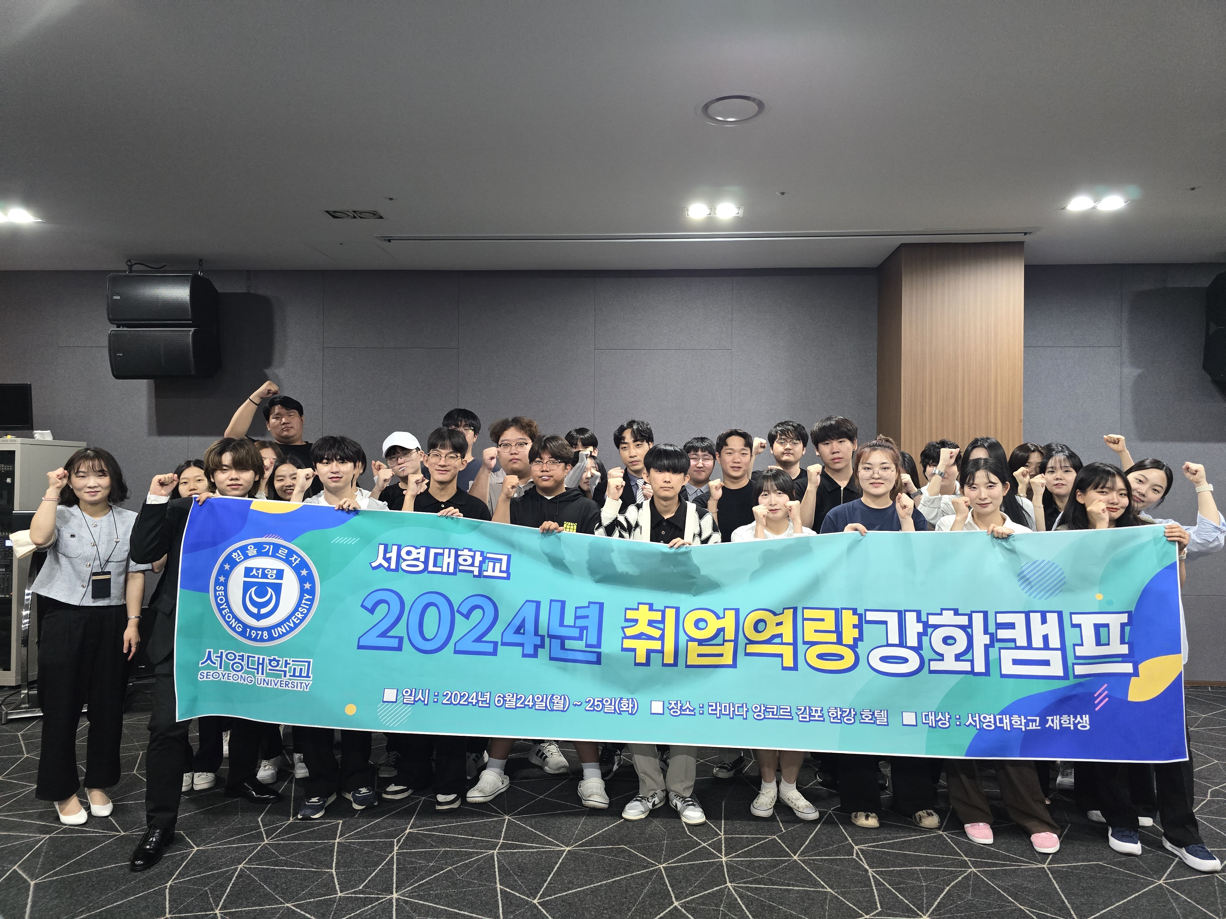 ○ 우리대학(총장 김정수)은 2024년 6월 24일(월) ~ 25일(화) 1박2일 일정으로 라마다앙코르 바이윈덤 김포한강호텔에서 9개 학과 34명의 재학생들과 함께 취업역량강화캠프를 실시하였다.
