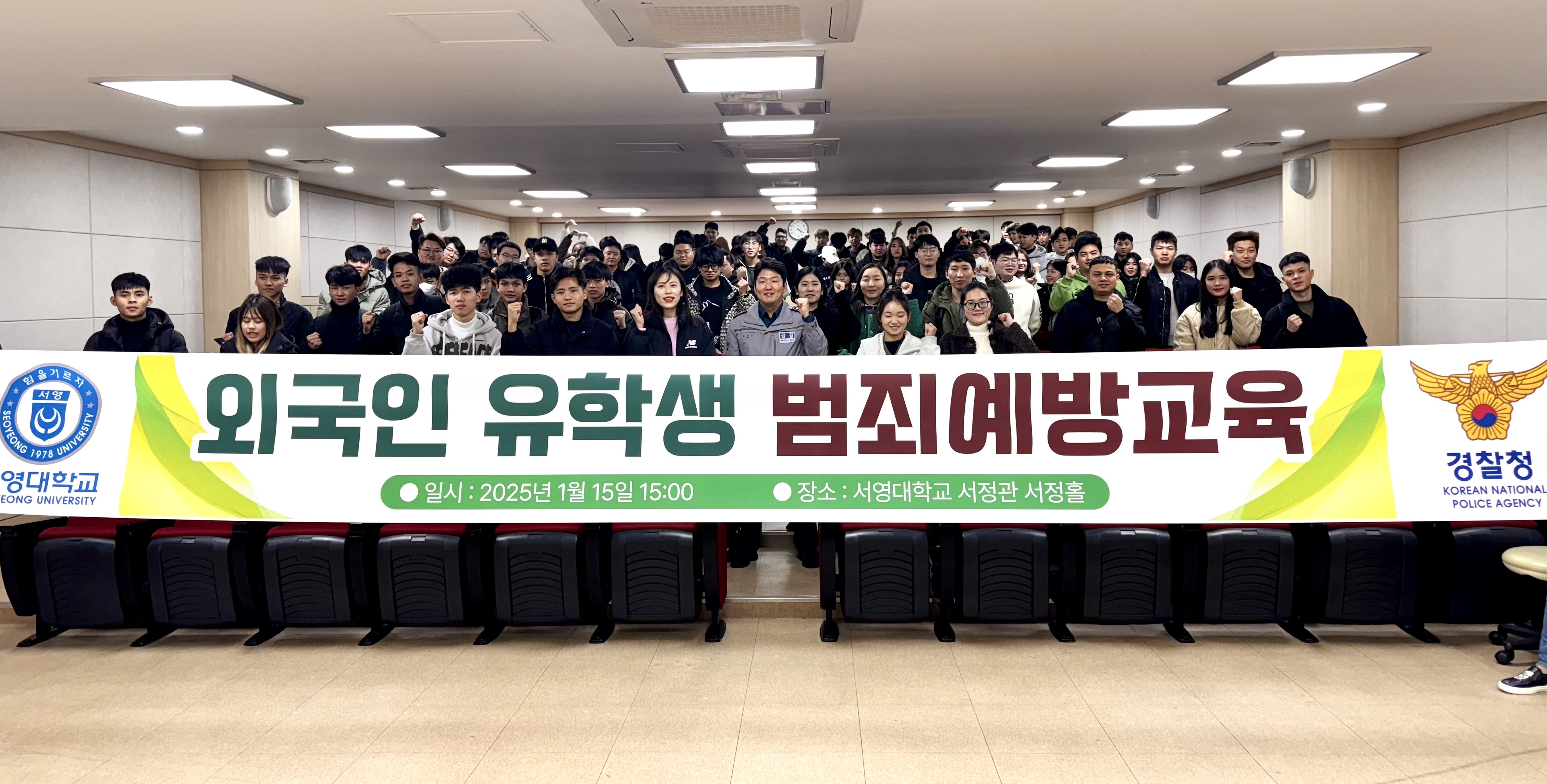 ○ 서영대학교는 최근 교내 서정홀에서 외국인 유학생들을 대상으로 광주경찰청과 연계한 겨울학기 한국어연수과정 범죄예방교육을 실시했다고 16일 밝혔다.