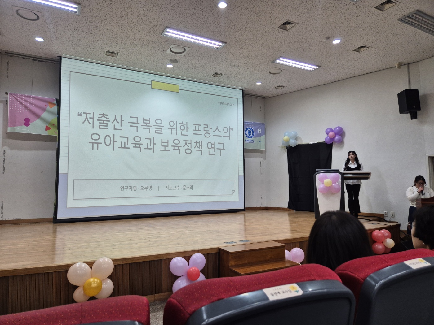 O. 7회 창의유아 페스티벌은 유아교육과 재학생들의 미래소양능력의 함양을 목표로 하여 학년별 특성화교육 계획에 따라 1학년은 미래환경과 생활에 대한 이해, 2학년은 디지털소양능력 함양, 3학년은 인구구조 변화 대응력 함양이라는 주제로 준비하였다이에 입학부총장 장철인 교수의 축사를 시작으로 △1학년 ESG 환경동화를 활용한 인형극 및 동극공연 4, △2학년 디지털 매체를 활용한 ESG 동화 놀이중심 영역별 교재교구 전시 18, △3학년 인구구조 변화 대응력 향상을 위한 학술대회 학교현장실습 우수사례 18편을 전시 및 발표하는 시간을 가졌다.