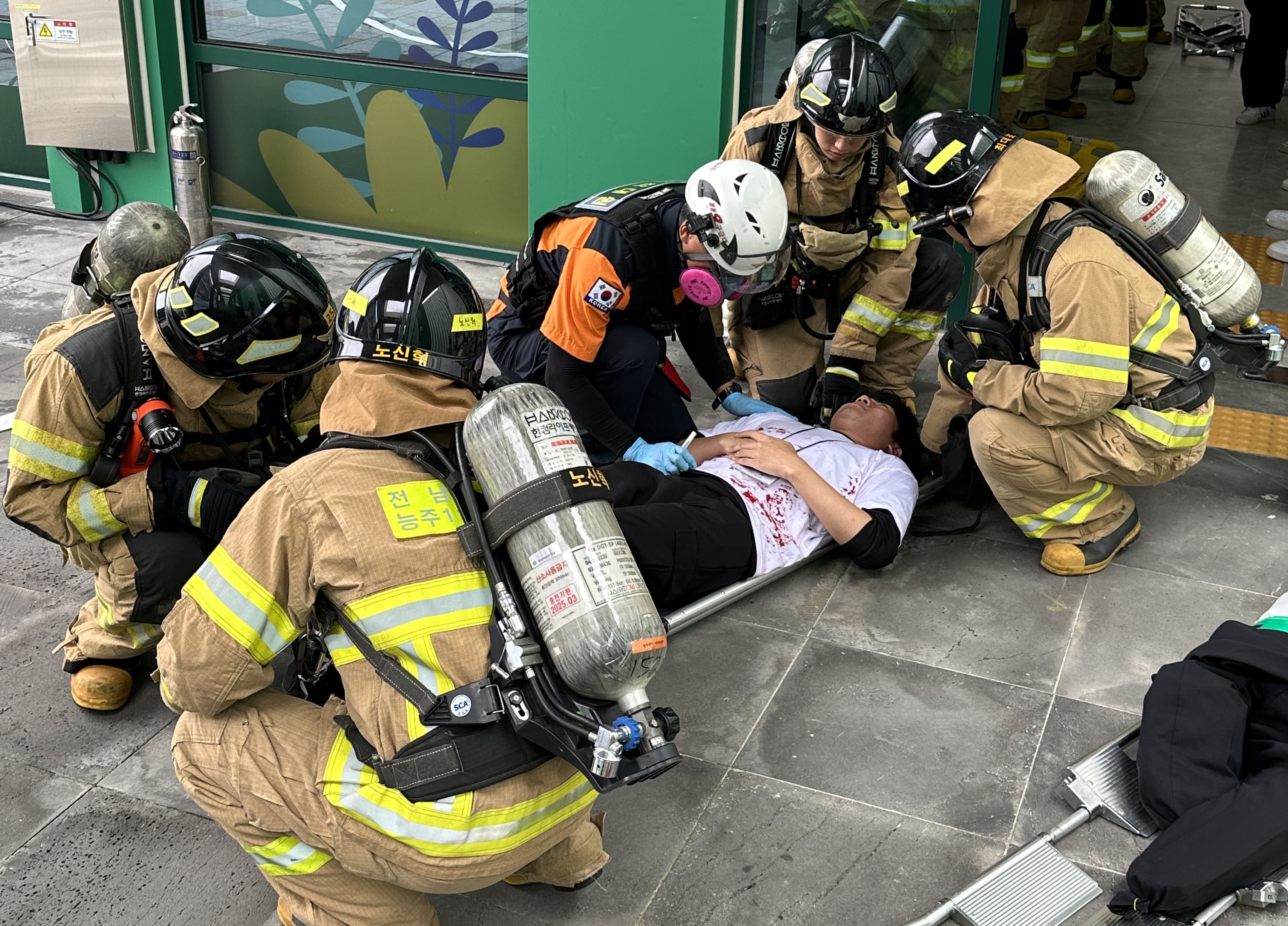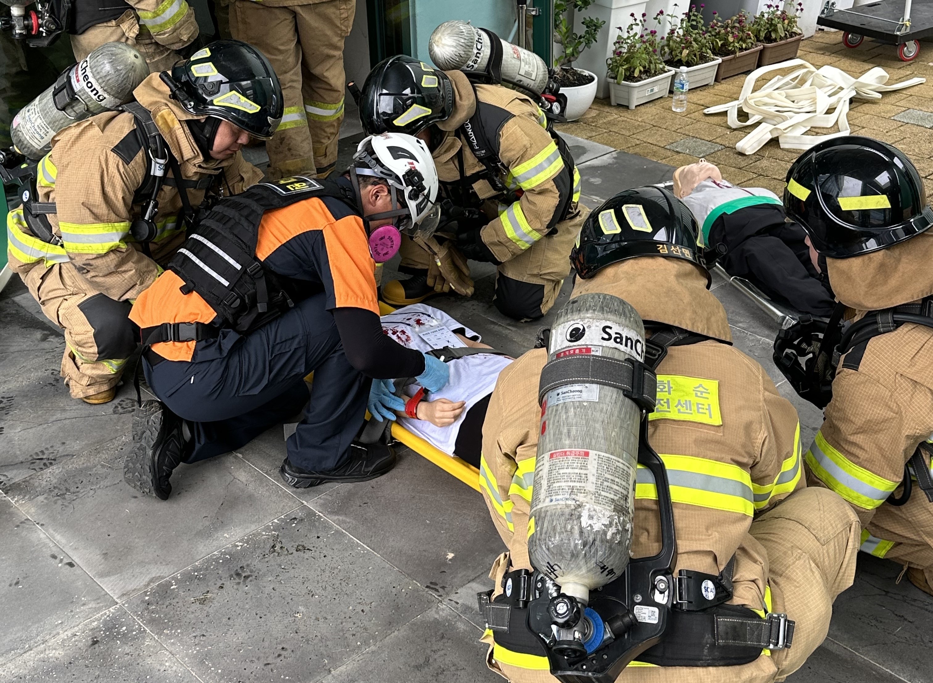 특히 재난발생 시 현장대응능력을 강화하기 위해 119구급대원(응급구조사)들은 기본 역할부터 중증도에 따른 환자분류, 응급처치 및 병원이송에 이르기까지 실제 상황을 가정해 훈련에 임했다.